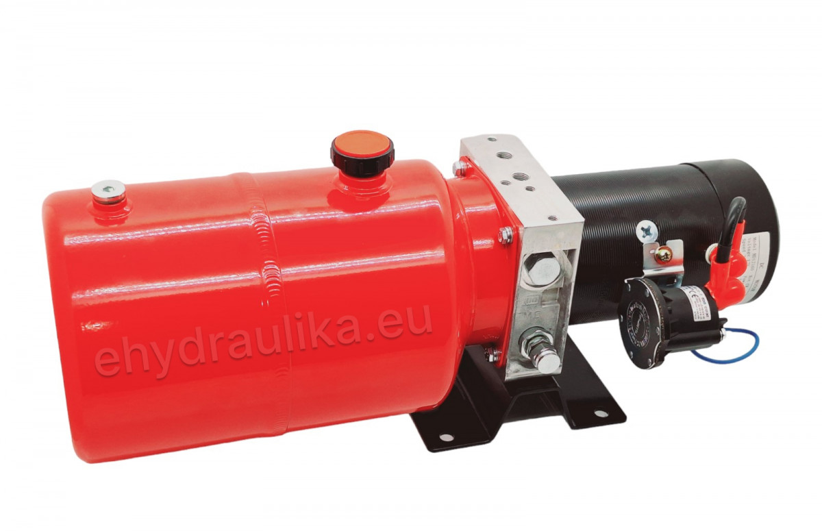 Komplett hidraulikaforrás, szivattyú 4,2 cm3. Max. rpm 9 MPa (90 bar), 6 literes tartály, 12 V-os motor 2,0 kW teljesítménnyel és 2500 ford./perc fordulatszámmal. Áramlási sebesség max 10,5L/perc. Nyomásforrásként szolgál a sokoldalú felhasználáshoz. henger, pótkocsi, billenő stb. vezérlése.