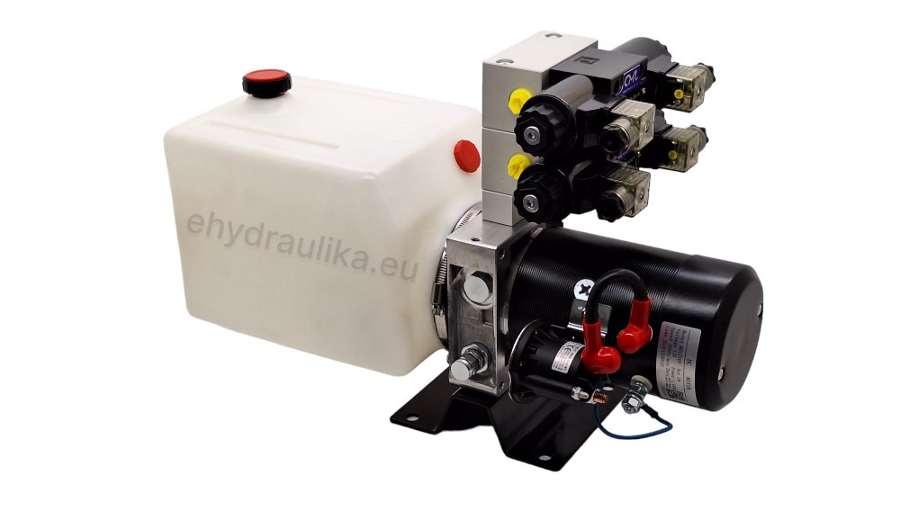 Komplett hidraulika forrás, szivattyú 2,5 cm3/ford. Max. nyomás 16 MPa (160bar), 6 literes acéltartály, 24V-os motor 2,2KW teljesítménnyel és 2500 rpm fordulatszámmal.Áramlási sebesség max 6,5L/perc. Nyomásforrásként szolgál sokoldalú felhasználáshoz, henger, pótkocsi, billenő stb. vezérléséhez.