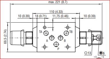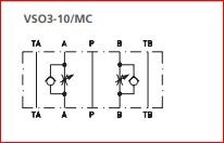 ARGO-HYTOS, 2VSO3-10 moduláris fojtószelep a be- / kimeneten, A, B ág, DN10 átmérőjű: